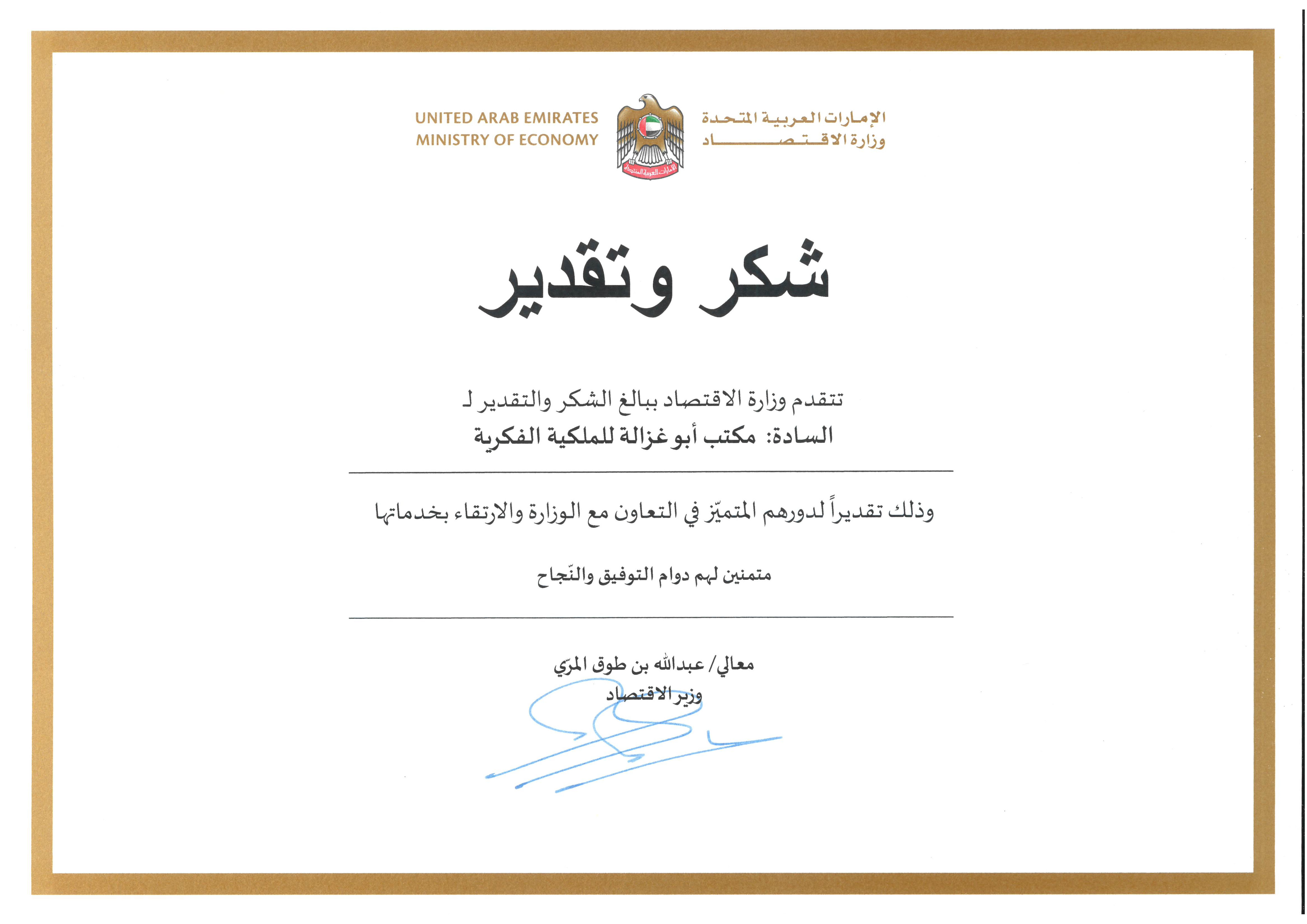 DUBAI – Emphasizing its valuable cooperation with the Ministry of Economy in the UAE, Abu-Ghazaleh Intellectual Property (AGIP) was honored by the UAE’s Ministry of Economy in a special ceremony held in Dubai on November 4, 2022.