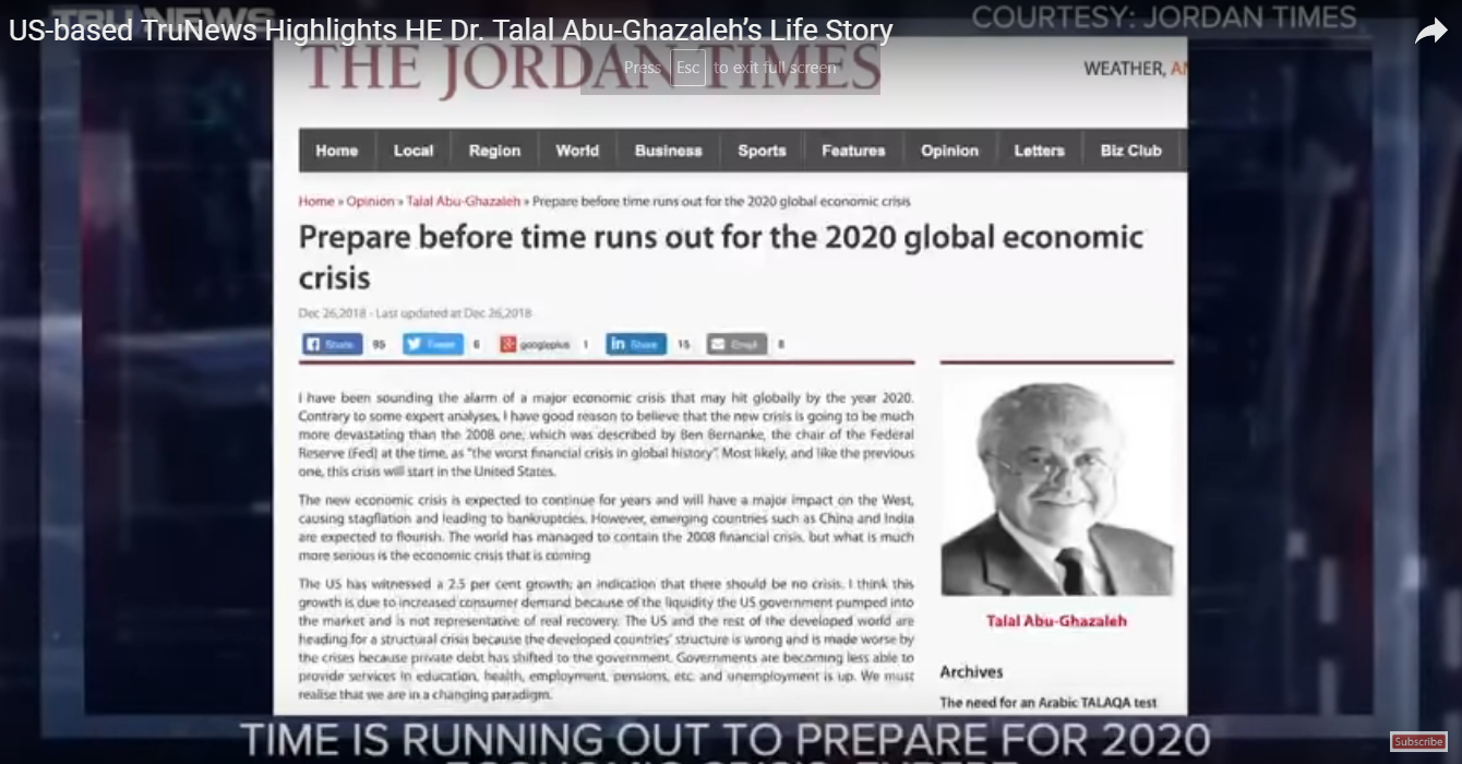 | US-Based TruNews TV: The Truth Abu-Ghazaleh’s Predictions on 2020 Economic Crisis Started to Emerge |